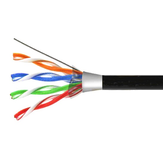 Kable i przewody teleinformatyczne różnych producentów - druty i linki nieekranowane parowane UTP, ekranowane FTP, z możliwością stosowania na zewnątrz PE lub żelowane, opcjonalnie z linką nośną, kategorii 5 i 6.